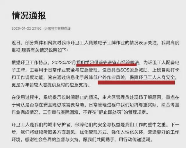 运城市给环卫工人戴定位器,是“借鉴先进省市经验”?